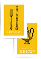 Upgrade your kitchen with these stylish teal and aqua kitchen decor prints, complete with the kitchen quotes: Fancy a brew & Let's eat - Bon Appétit!
