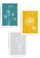 Set of 3 Teal Mustard and Grey Botanical Leaf Wall Art Prints