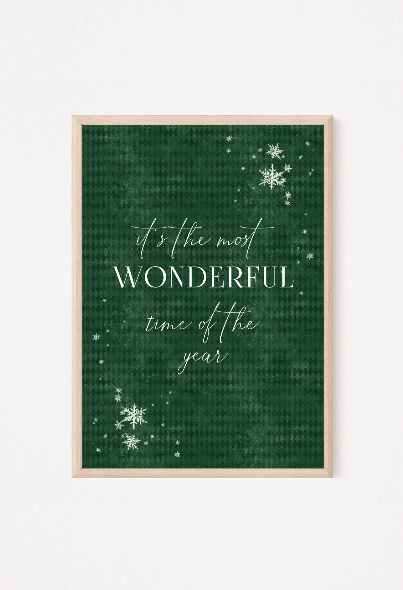 Celebrate the magic of the season with our “It’s the Most Wonderful Time of the Year” wall art print. Designed on a rich forest-green patterned background with delicate falling snowflakes, this print blends cozy winter charm with elegant holiday typography.