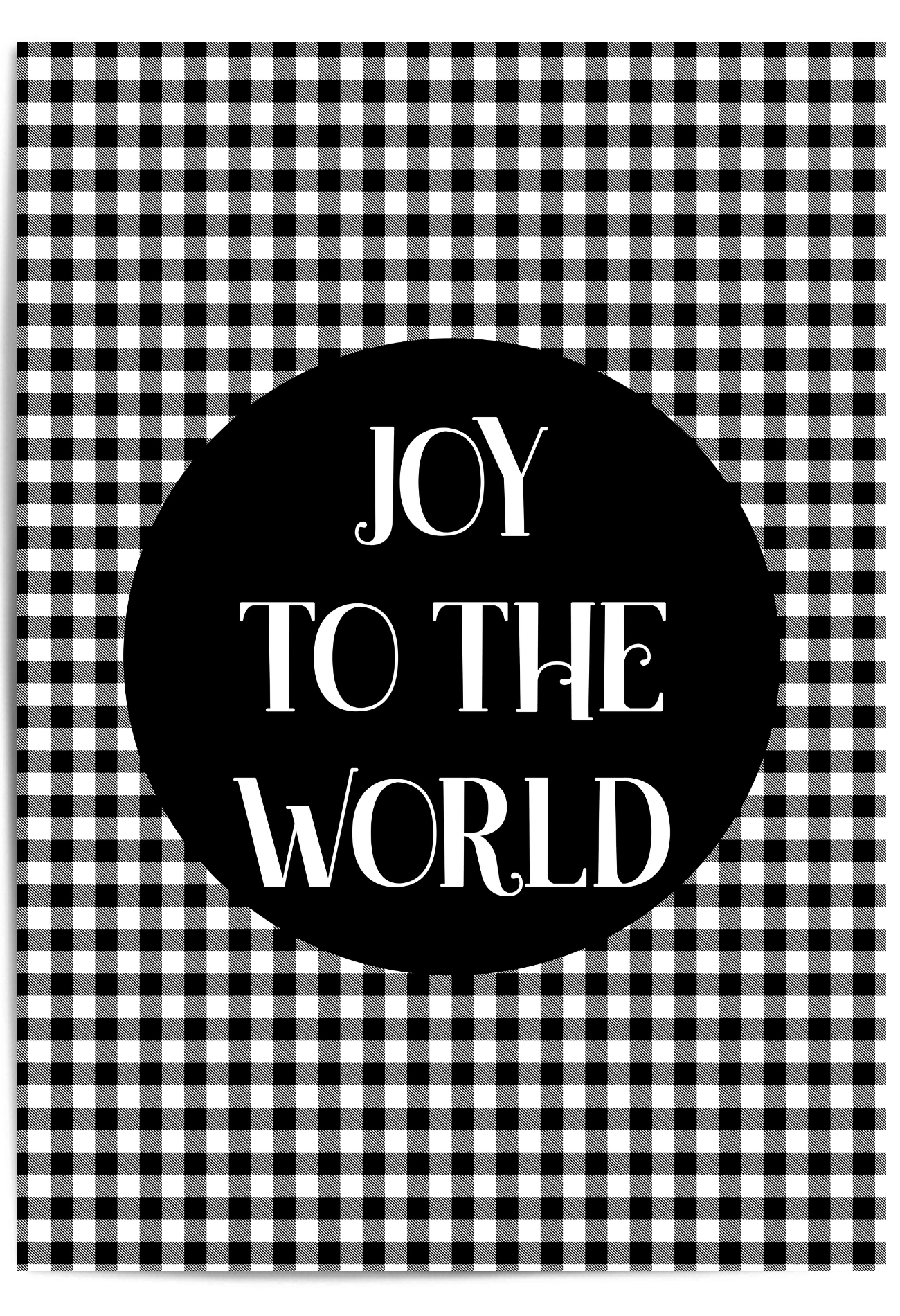 Bring classic charm and timeless faith into your home with our “Joy to the World” Christmas wall art print. Featuring bold white lettering on a black circle set against a black-and-white buffalo plaid background, this modern farmhouse Christmas print blends rustic texture with elegant simplicity.