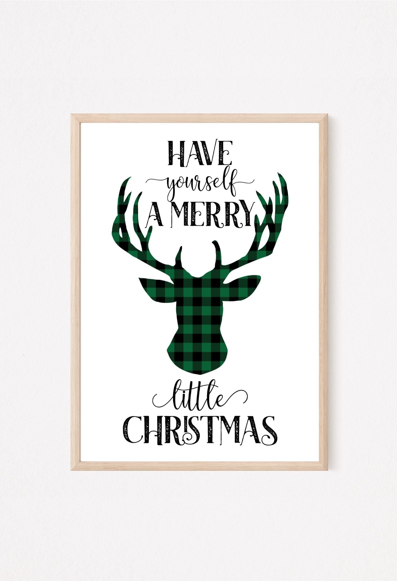 Have Yourself a Merry Little Christmas Wall Art – Green Buffalo Plaid Reindeer Print