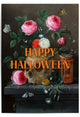 - Features spooky pumpkins, bats, spider, and ghost typography