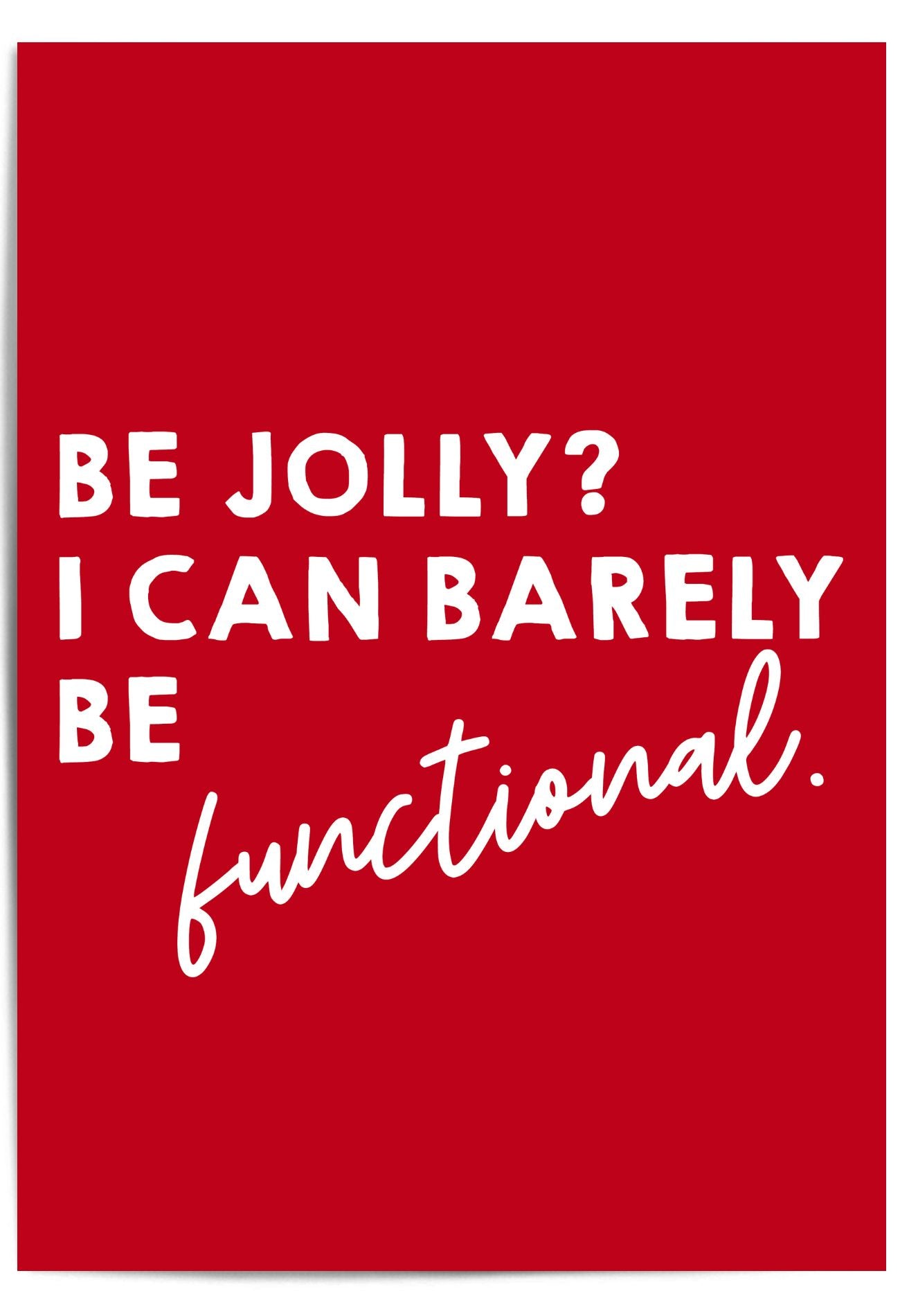 Funny Christmas Quote Wall Art – “Be Jolly? I Can Barely Be Functional” Red Typography Print – Humorous Holiday Decor Poster for Modern Homes