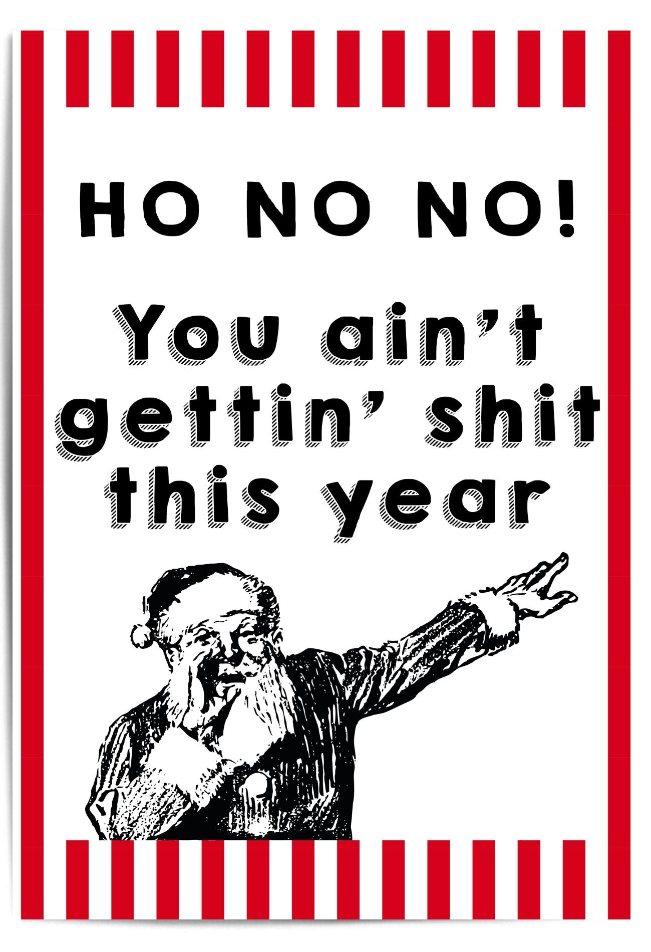 Funny Christmas Wall Art – Retro Santa Print – “Ho No No You Ain’t Gettin’ Shit This Year” Holiday Decor